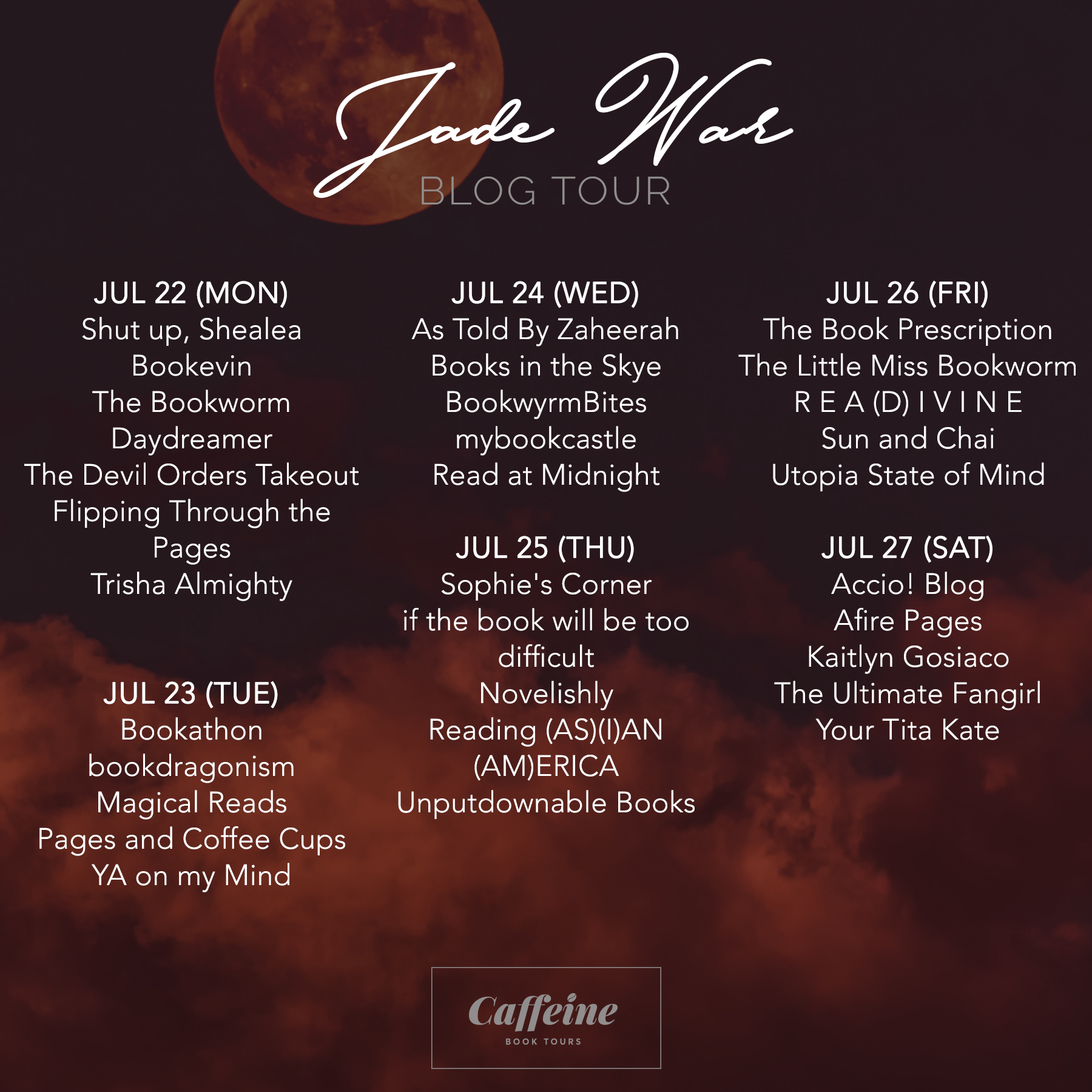 Wanna follow the #JadeWarTour? See below schedule and join us: