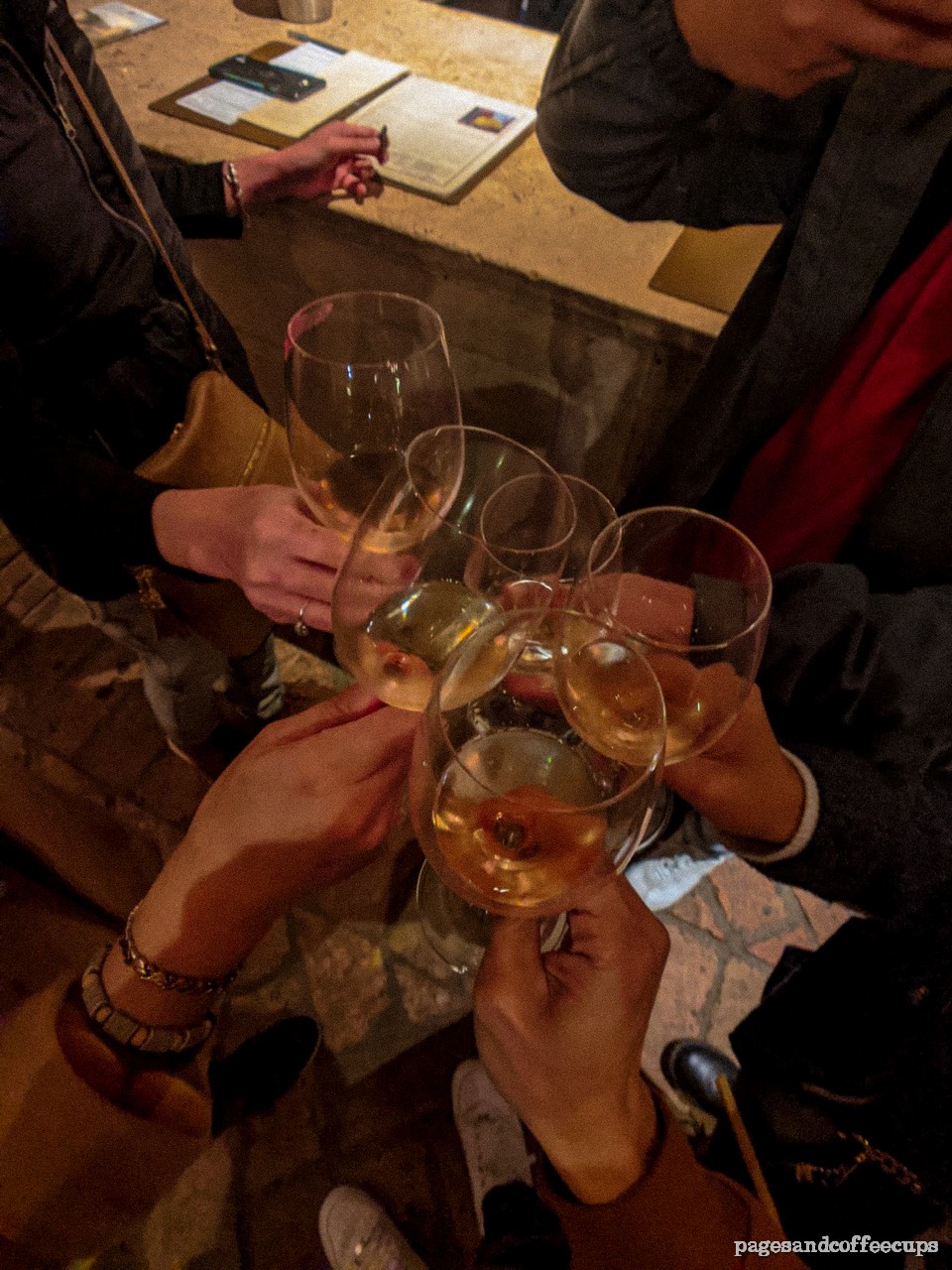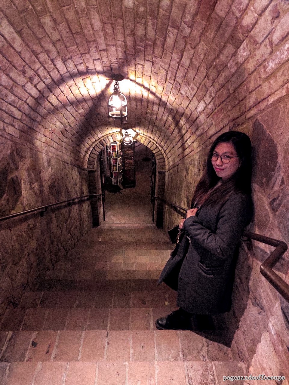 It was the perfect time of the day: walking in those cobbled halls while the almost setting sun bathed everything in gold. We had a lot of fun snapping photos of each other and the group. It was (almost?) winter when we went so the vineyard was dry but the castle was still such a special sight that late afternoon.