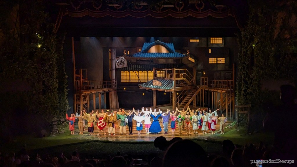 Spirited Away being a story rooted almost entirely in fantasy, one would wonder how they would be able to pull it off on-stage – but the whole production did! I particularly liked the play on perspective using practical effects, e.g., the use of differing size of the dragon puppet to convey the distance to which it flies in the sky – which made the whole staging more three-dimensional. The giant rotating bathhouse, that transforms and transports and zooms in on specific parts of the bathhouse, was so cool. Every step, every nook and cranny, every scene, every beat of the score – they were calculated and choreographed to give us a near perfect show.