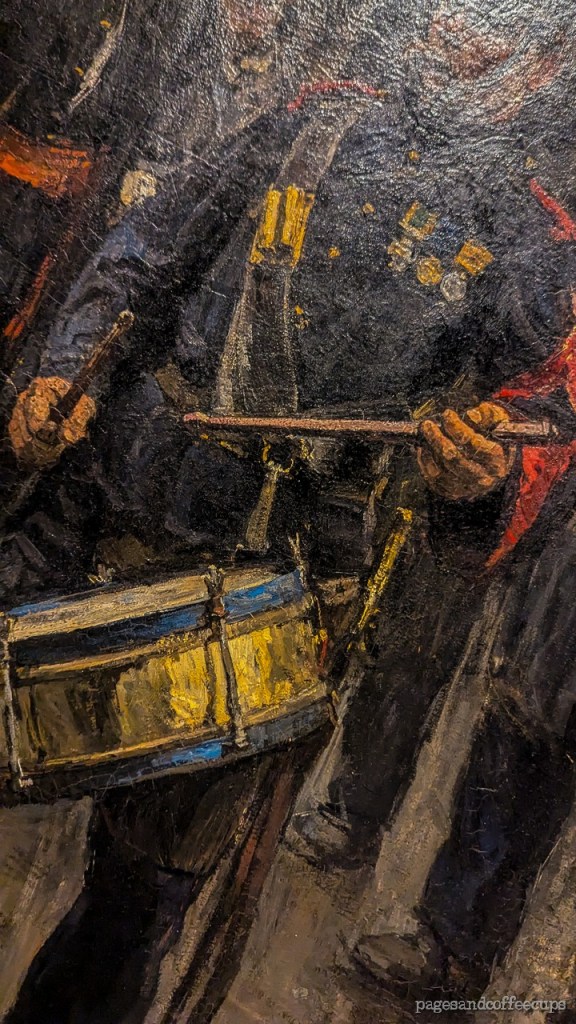Did you know that Israëls painted this artwork at only 18 years old? When viewed as a whole, the painting appears dark and grey, but I loved how the colors pop the closer you look at them (see the close-up drum shot above).I love how detailed the work is as well.