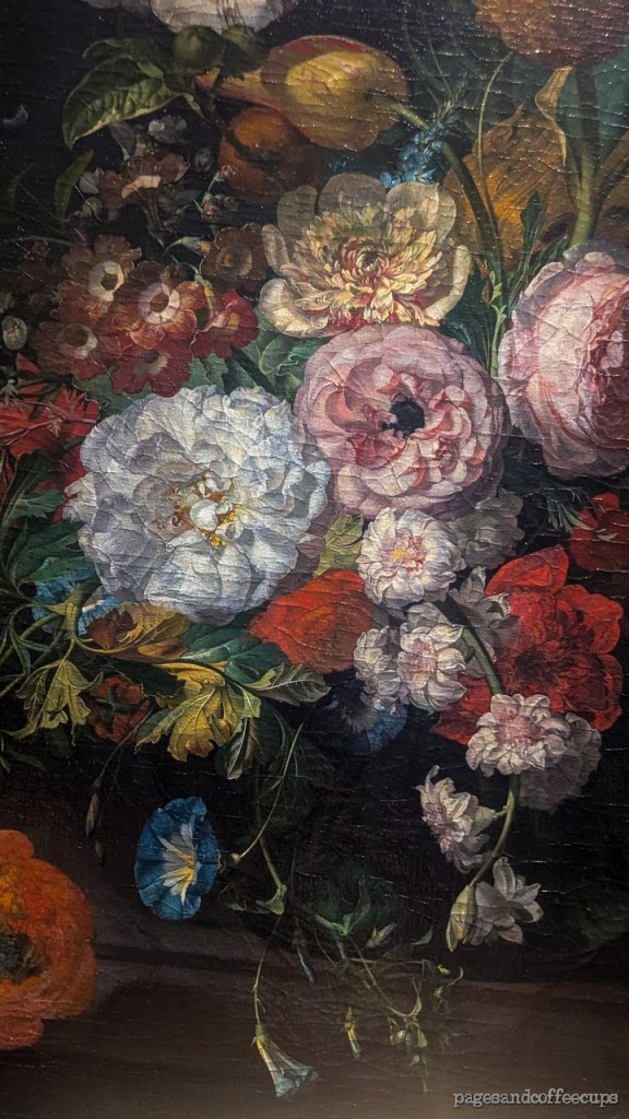 Perhaps, one of the most memorable paintings that I saw up close would be Johannes Vermeer’s The Milkmaid (Vermeer of the Girl with the Pearl Earring fame). I really liked how the ultramarine in the painting just popped, drawing the eye in and providing a high contrast with the ochre of the bread. I was also fascinated by all the still-life paintings I saw in various rooms, particularly the floral still-life paintings, which I learned were quite popular in the Netherlands during the 17th century (“still life of flowers is a typically Dutch genre“: floral still-life, blommetje). I loved the contrast of these blooms against the black or dark backgrounds (just look at how gorgeous that Vosmaer painting is, pictured above). But what’s even more interesting is that these aren’t ‘still life’ in the strictest sense (i.e., painted from life) because the flower arrangements depicted in these paintings could never have existed — the flowers in these paintings bloom in different seasons. (I particularly loved this essay by Sarah Hyde speculating the secret language of Dutch flower paintings.) One of the painters I came across the first time in this museum would be Rachel Ruysch, who specialized in these floral still-life paintings. She was the most famous female artist of her time and the best-documented female painter of the Dutch Golden Age. Ruysch was the first female member of the painters’ guild in The Hague, a significant achievement in a male-dominated art world at the time. She also “revolutionized still lifes, sold her canvases for more money than Rembrandt did, and contributed to influential scientific developments—all while raising 10 children. And that just scratches the surface of her story.” What a fascinating woman, indeed.